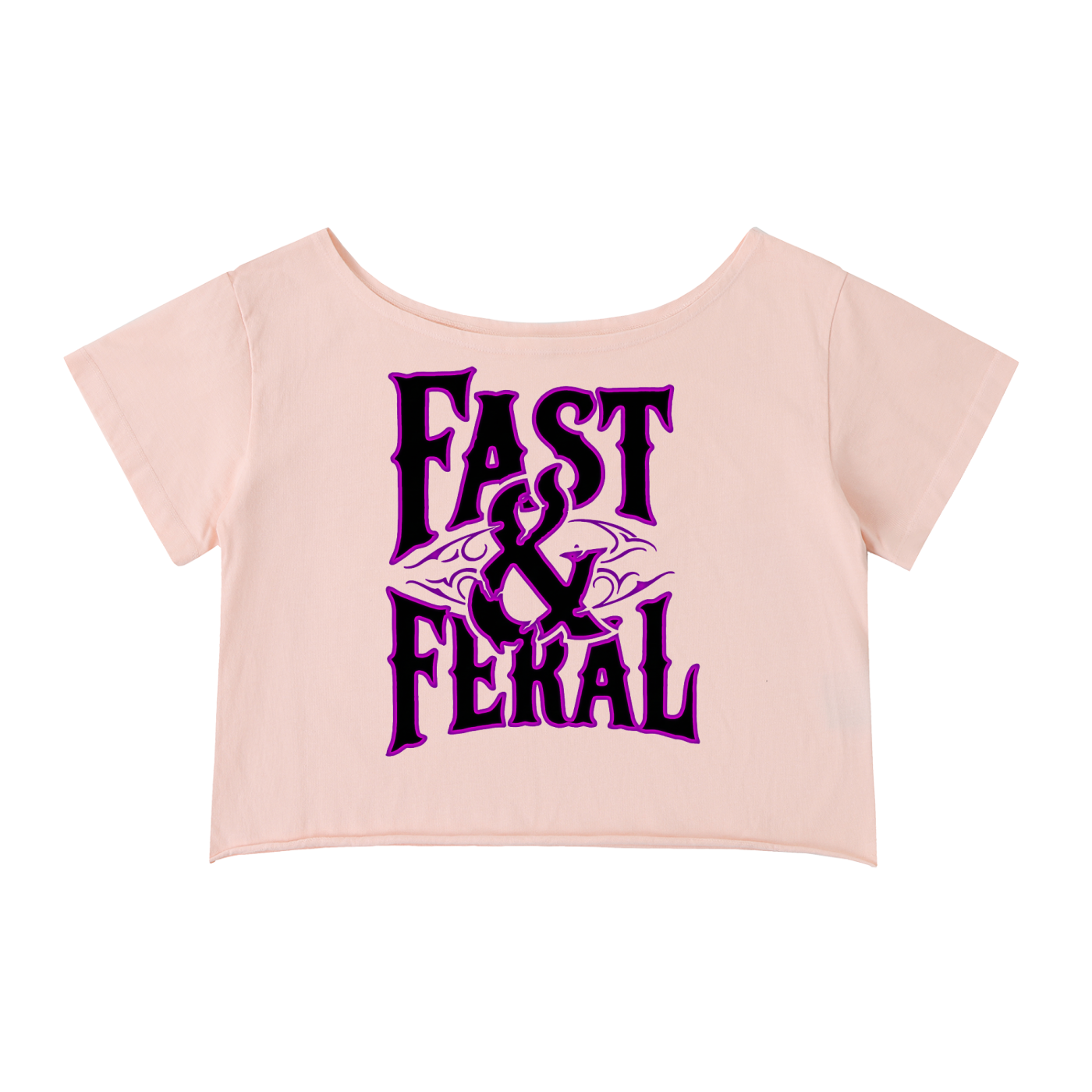 Fast & Feral Off-Shoulder Rolled Hem Cotton T-Shirt