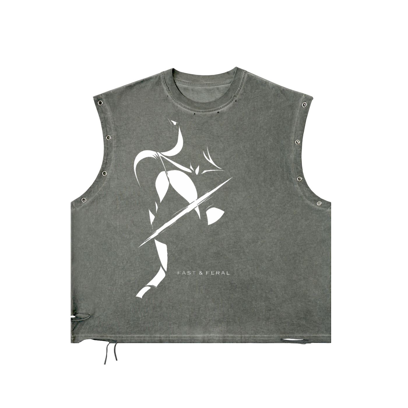 Fast & Feral Silhouette Distressed Grommet Eyelet Tank Top