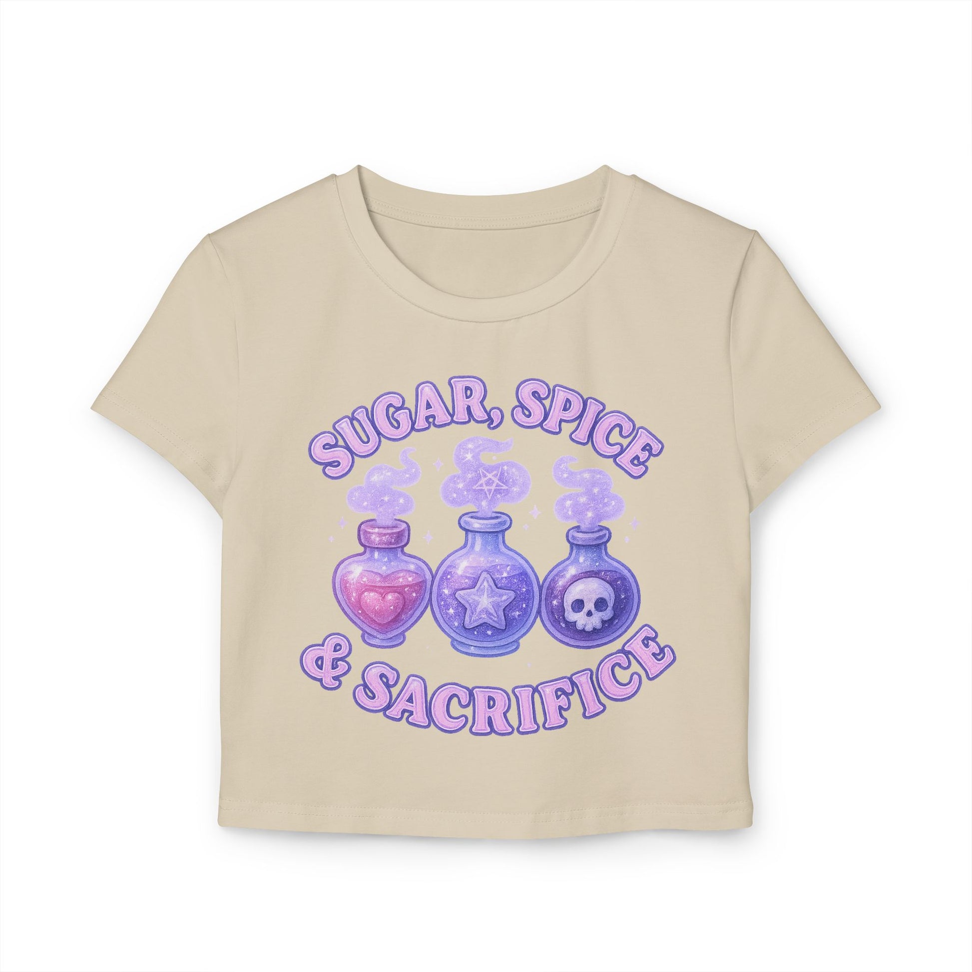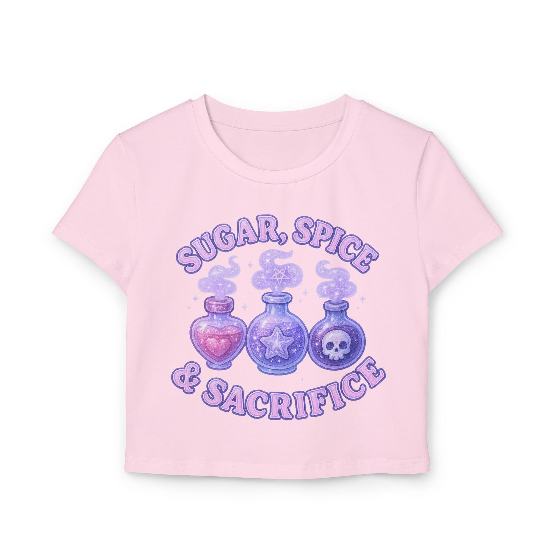 Sugar, Spice & Sacrifice baby tee | Potion bottles, pastel witchy design
