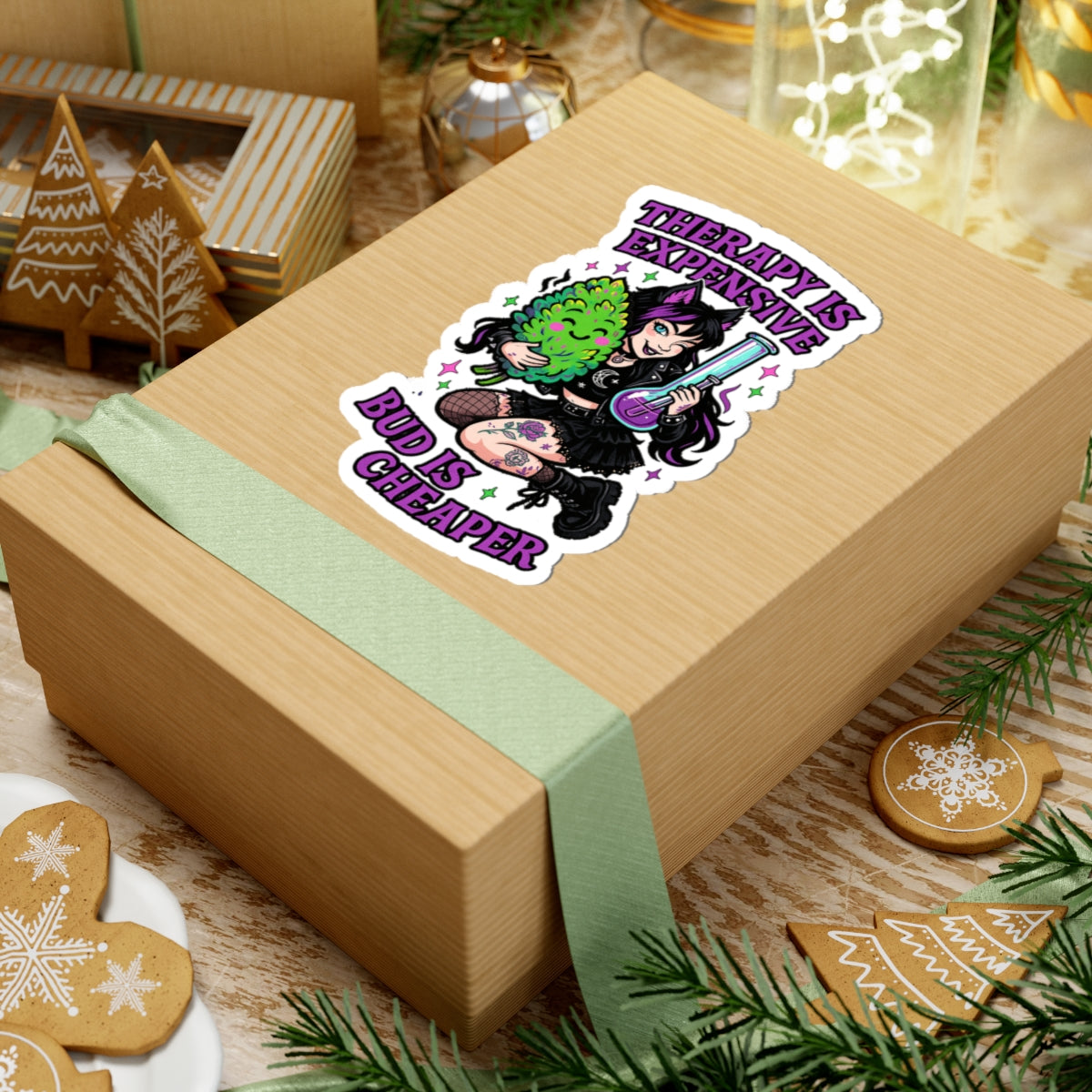 "Therapy Is Expensive, Bud Is Cheaper" Cute Cannabis Therapy Stickers | Funky Decal for Water Bottles, Laptops, Mugs | Perfect for Cannabis Lovers, Gifts, Self-Care