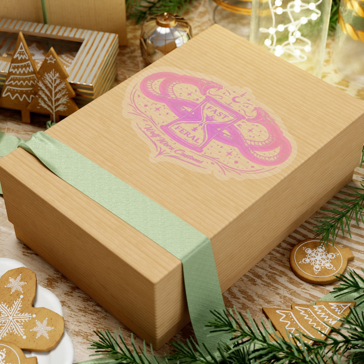 At its core, this sticker line fuses the entire Wolf Worx universe into one cohesive visual ecosystem. Wolf Worx Customs brings the backbone: heritage hot-rod culture, custom car authority, performance obsession, audio discipline, mechanical credibility, and a shop-born standard of execution that refuses to feel cheap, novelty, or mass-produced. Fast & Feral brings the bite: a women-led, femme-forward design voice rooted in confidence, dominance, flirtation, gothic-femme edge, playful menace, and unapologetic presence. Together, these stickers become more than decoration—they become territorial markers.