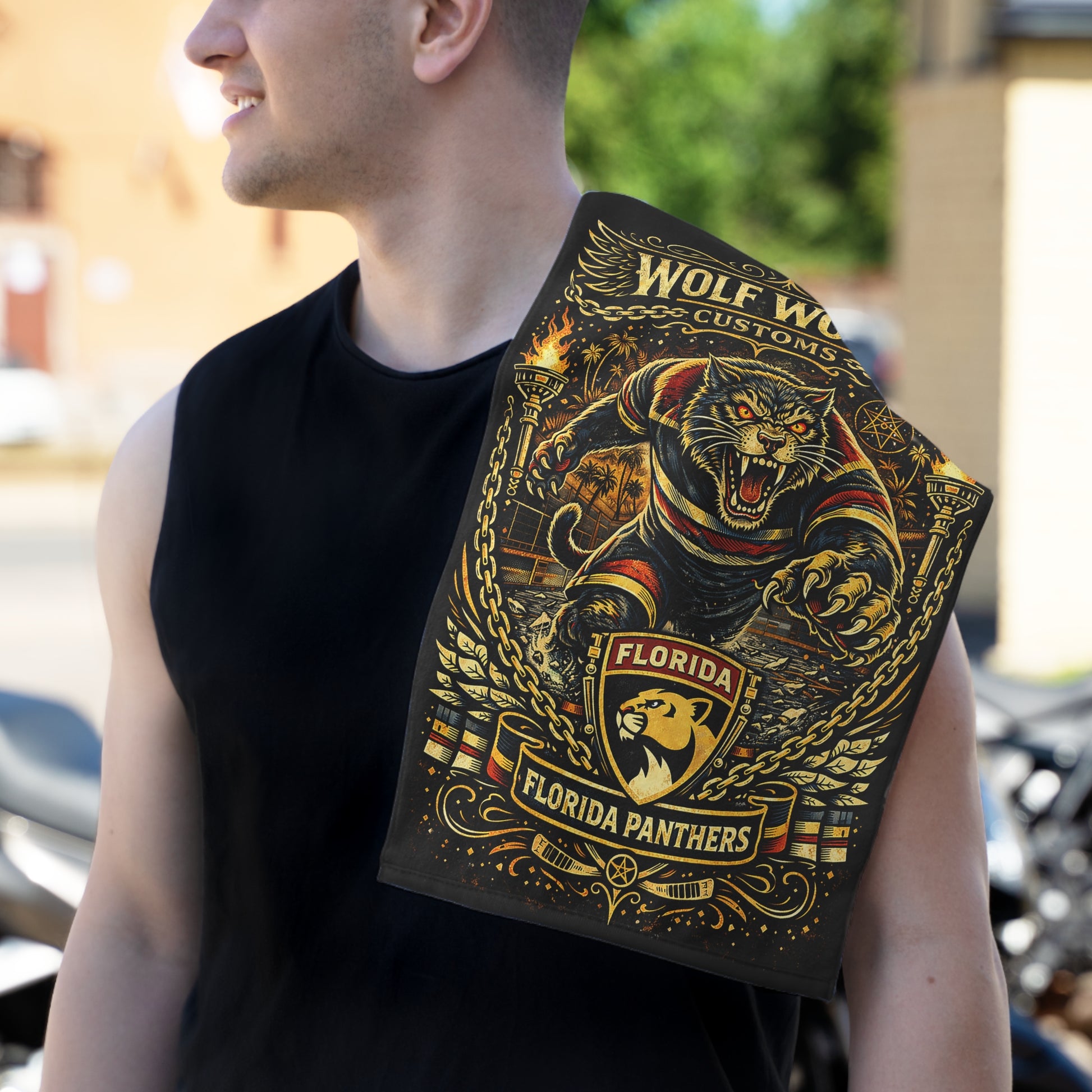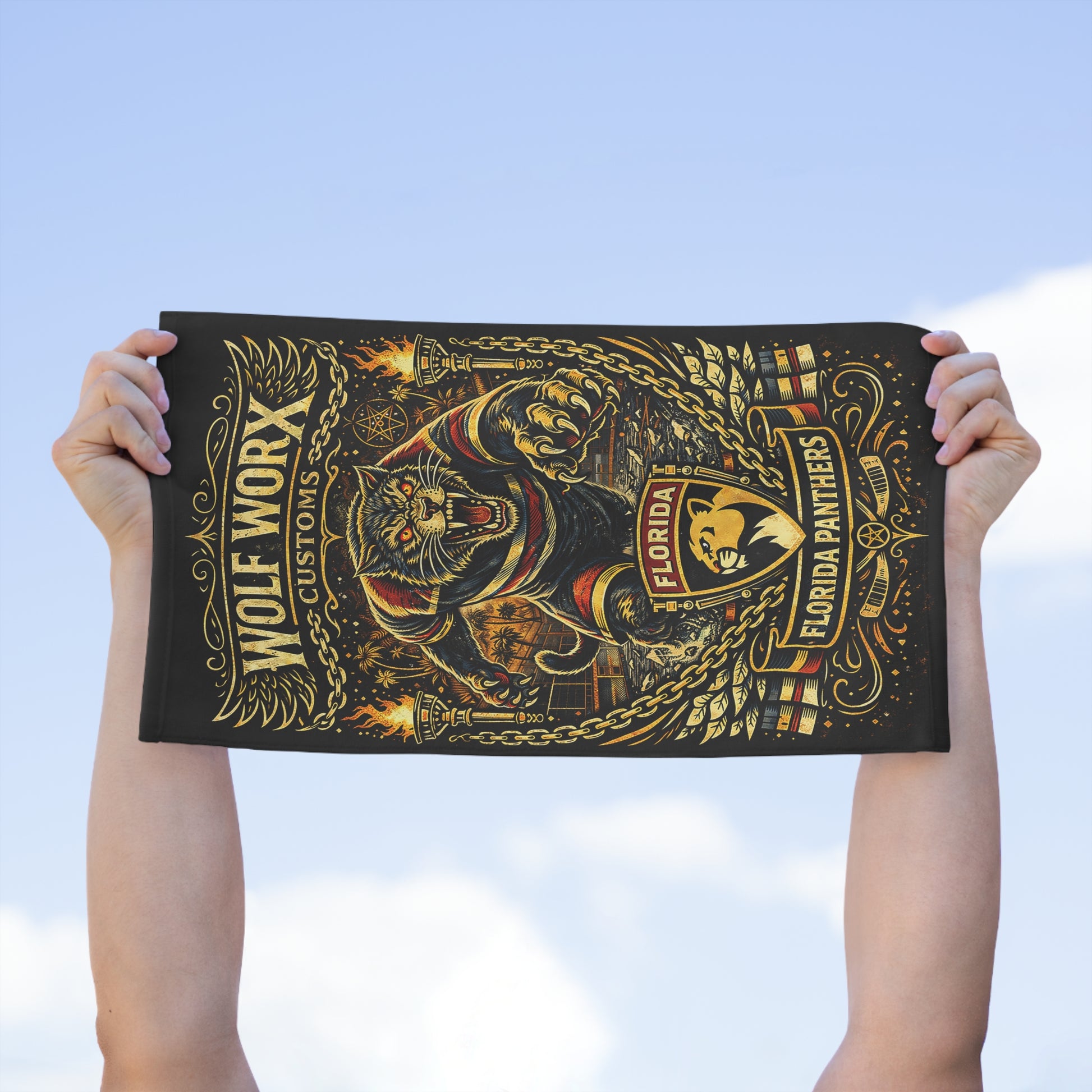 Wolf Worx Customs Florida Panthers Fan Rally Towel — Vintage Winter Classic Jersey Meets Von Dutch Pinstripe Hand Designed