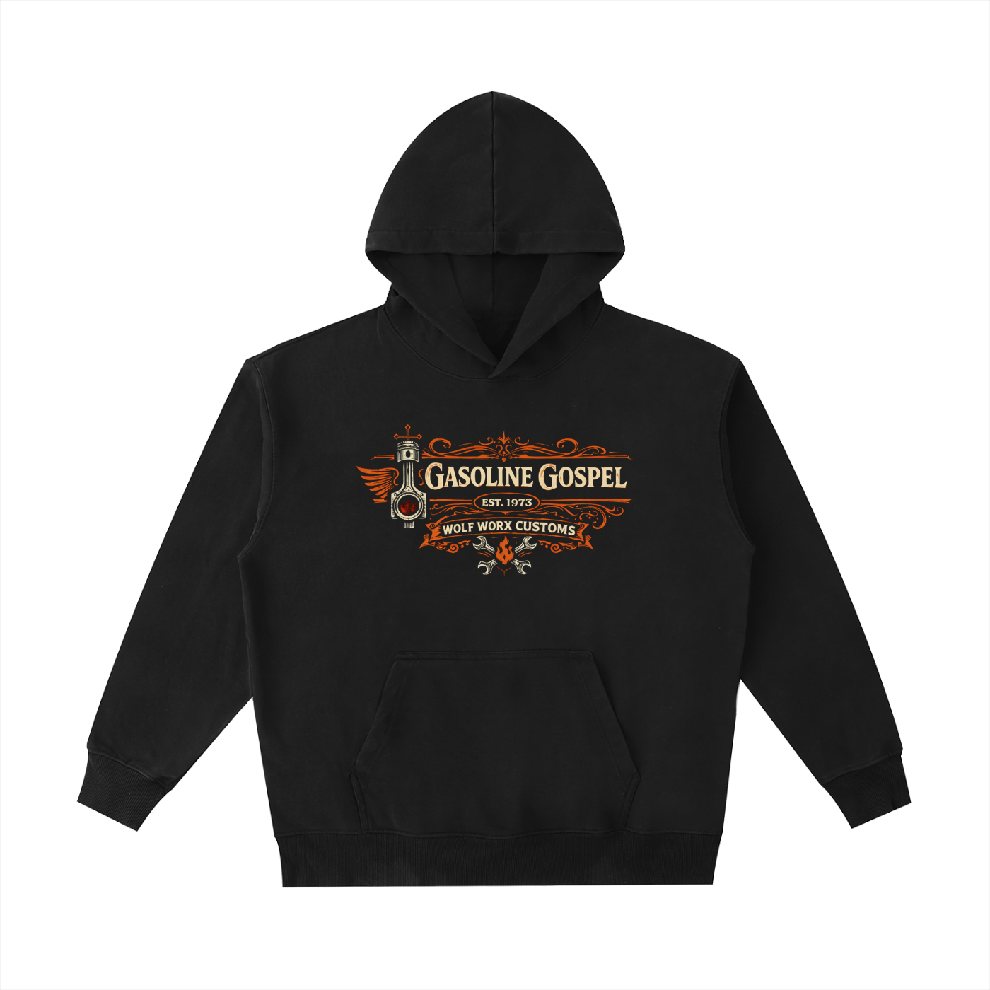 Wolf Worx Customs Gasoline Gospel Black Vintage Washed Heavyweight Hoodie