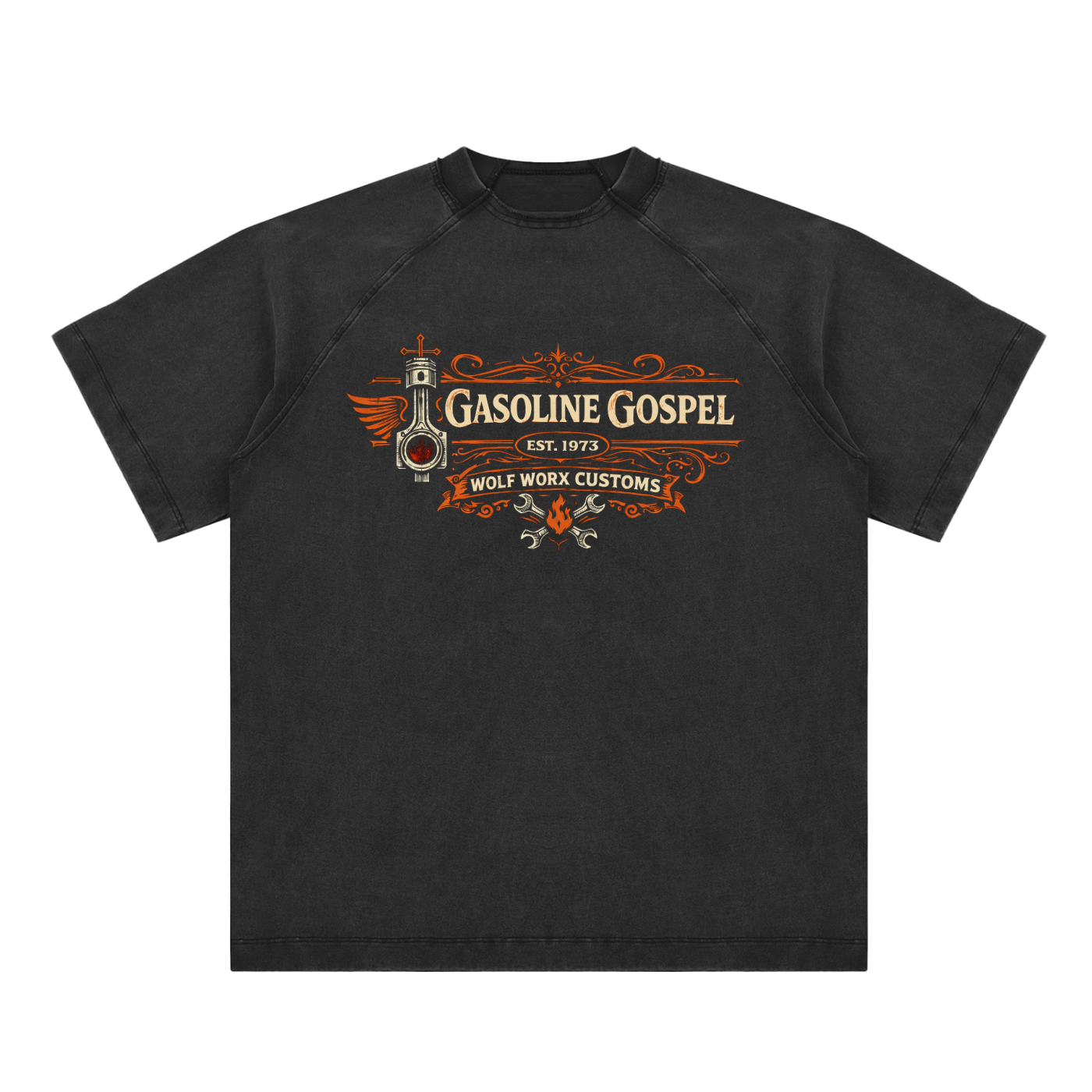Wolf Worx Customs Gasoline Gospel Black Vintage Washed Raglan Cotton T-Shirt