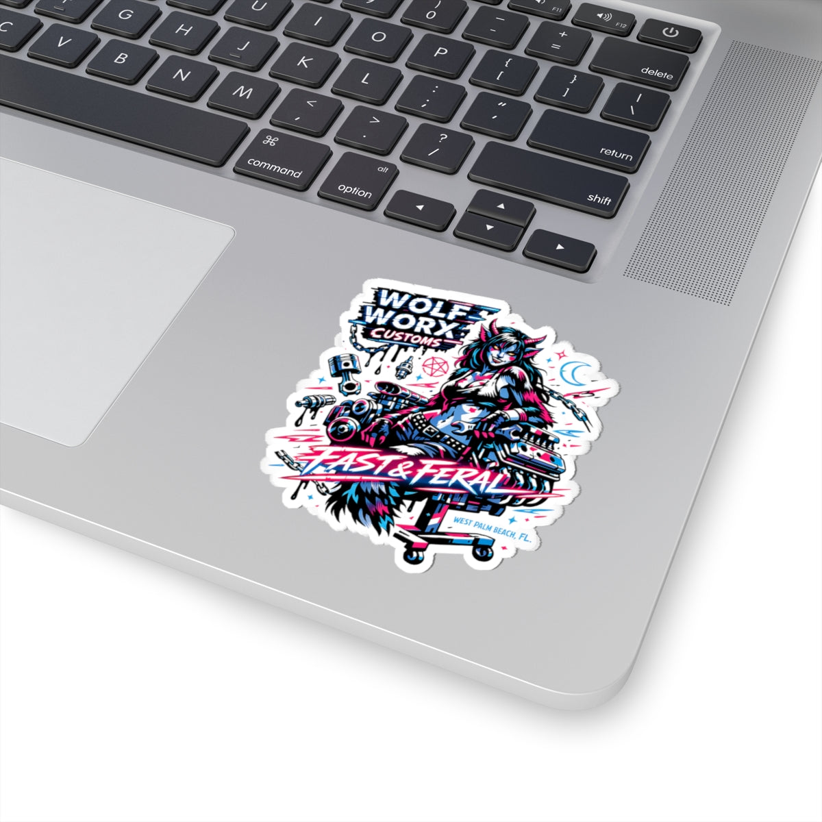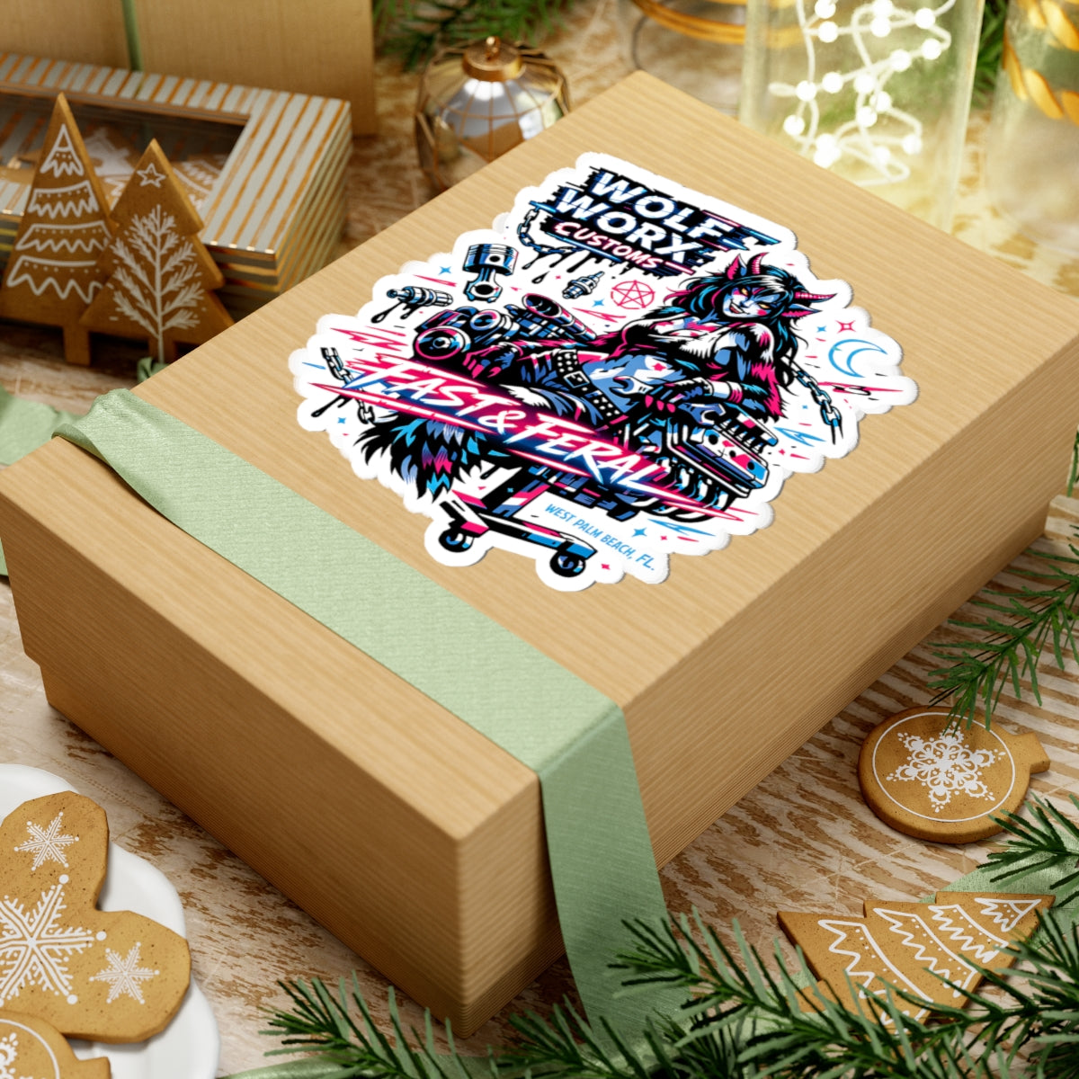 Limited-drop themed stickers tied to specific Wolf Worx Customs and Fast & Feral releases