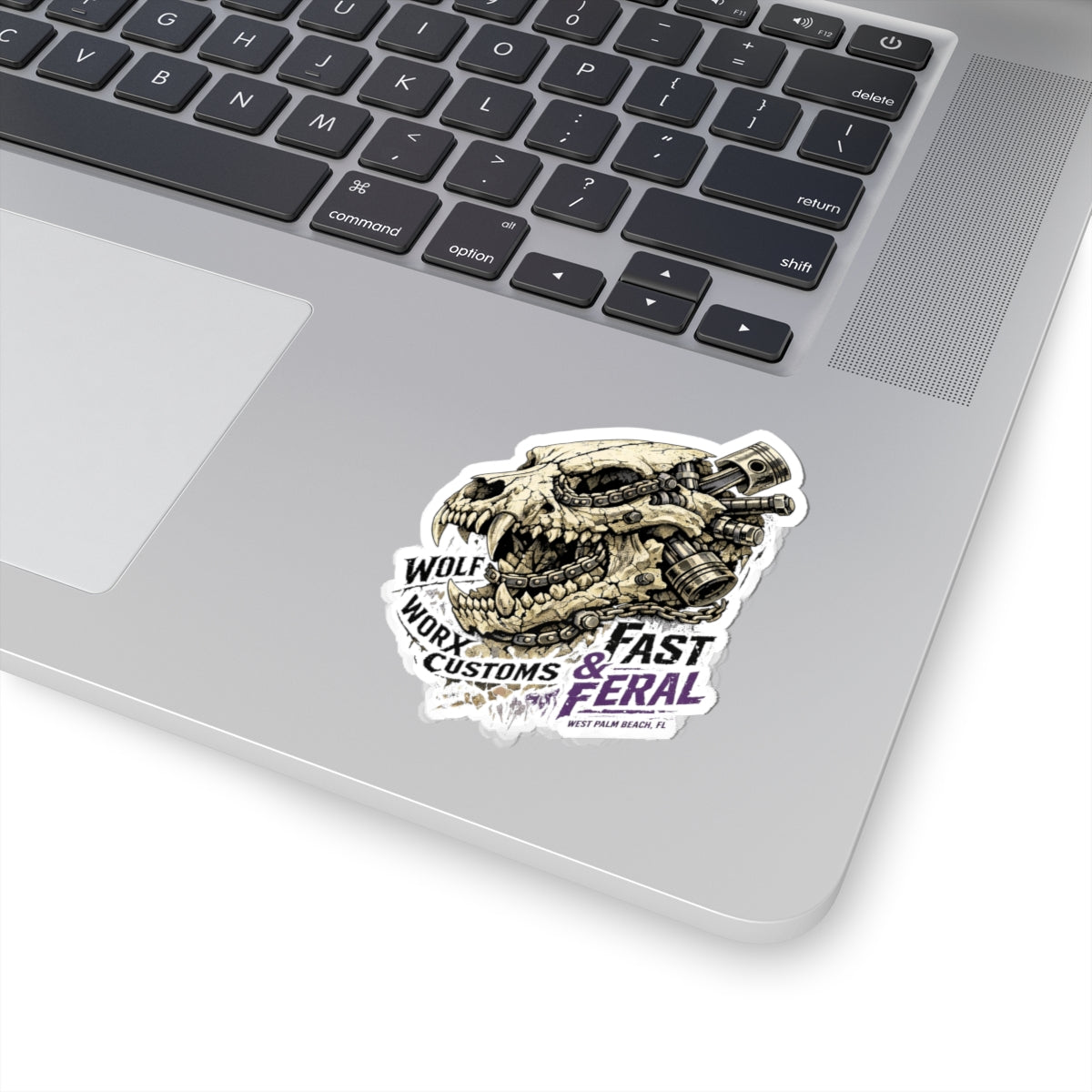 At its core, this sticker line fuses the entire Wolf Worx universe into one cohesive visual ecosystem. Wolf Worx Customs brings the backbone: heritage hot-rod culture, custom car authority, performance obsession, audio discipline, mechanical credibility, and a shop-born standard of execution that refuses to feel cheap, novelty, or mass-produced. Fast & Feral brings the bite: a women-led, femme-forward design voice rooted in confidence, dominance, flirtation, gothic-femme edge, playful menace, and unapologetic presence. Together, these stickers become more than decoration—they become territorial markers.