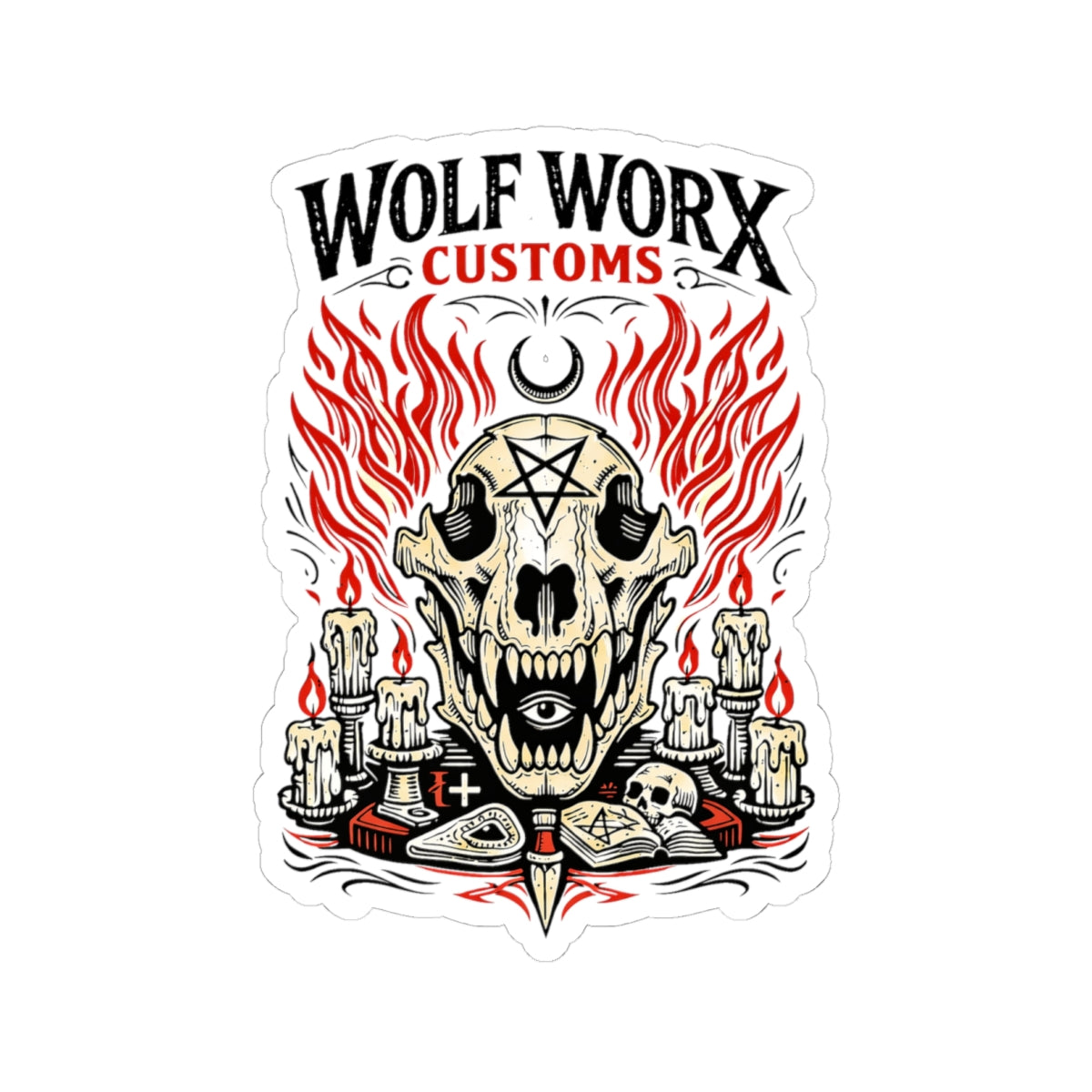 At its core, this sticker line fuses the entire Wolf Worx universe into one cohesive visual ecosystem. Wolf Worx Customs brings the backbone: heritage hot-rod culture, custom car authority, performance obsession, audio discipline, mechanical credibility, and a shop-born standard of execution that refuses to feel cheap, novelty, or mass-produced. Fast & Feral brings the bite: a women-led, femme-forward design voice rooted in confidence, dominance, flirtation, gothic-femme edge, playful menace, and unapologetic presence. Together, these stickers become more than decoration—they become territorial markers.
