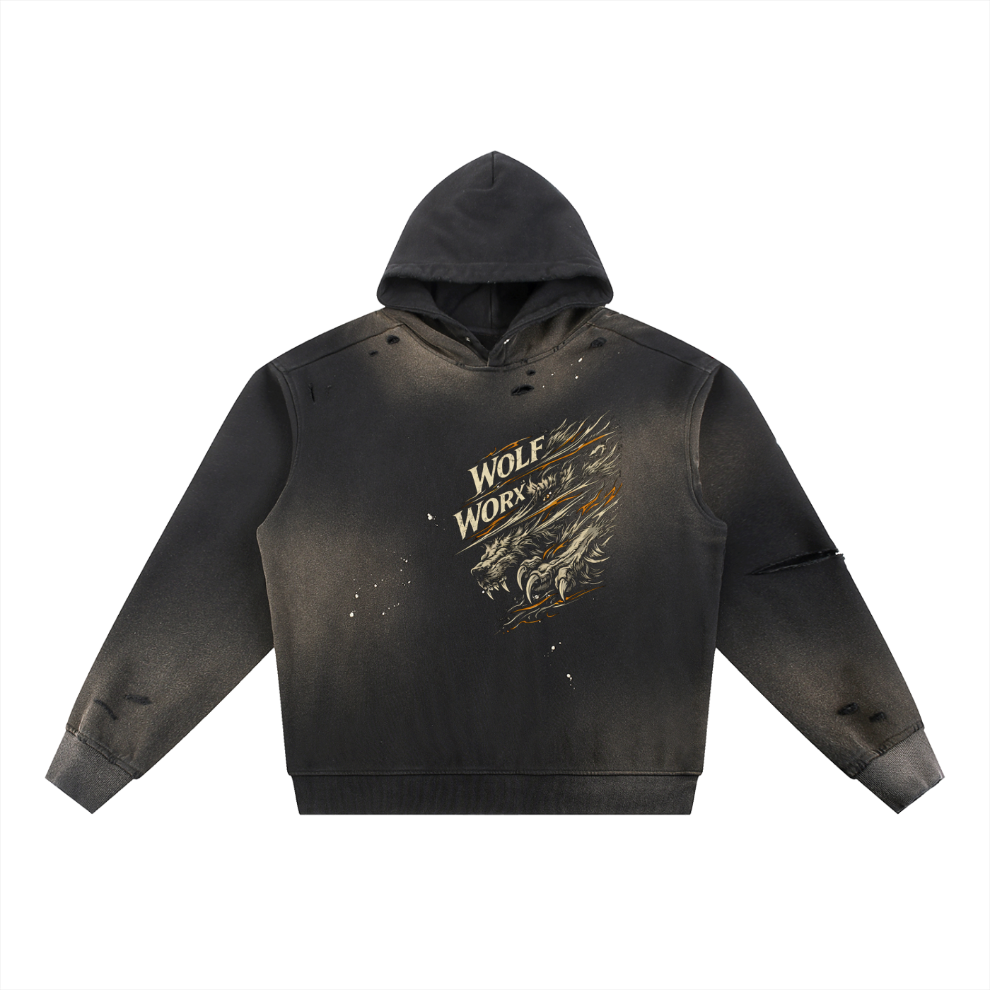 Wolf Worx Customs Slash Sun Fade Frayed Fleece Hoodie