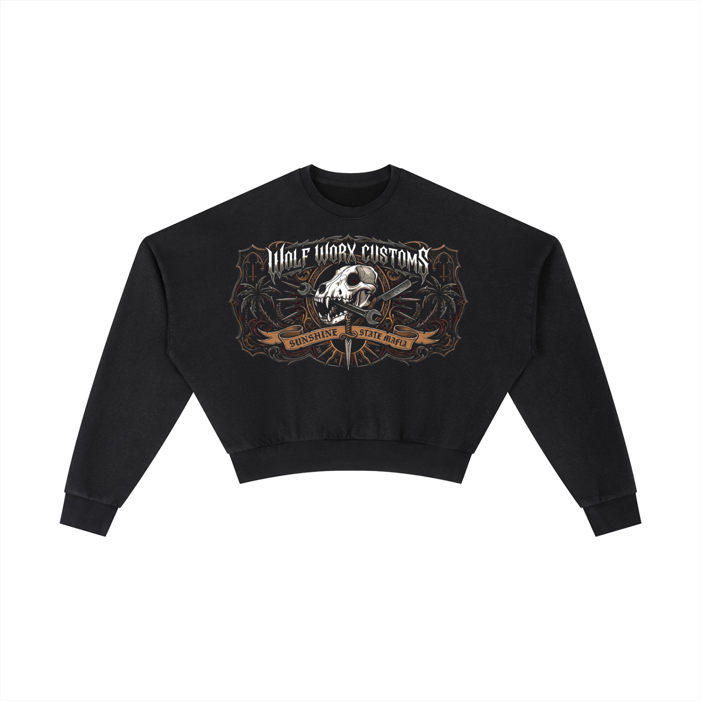 Wolf Worx Customs Sunshine State Mafia Barbwire Vintage Washed Cropped Sweatshirt