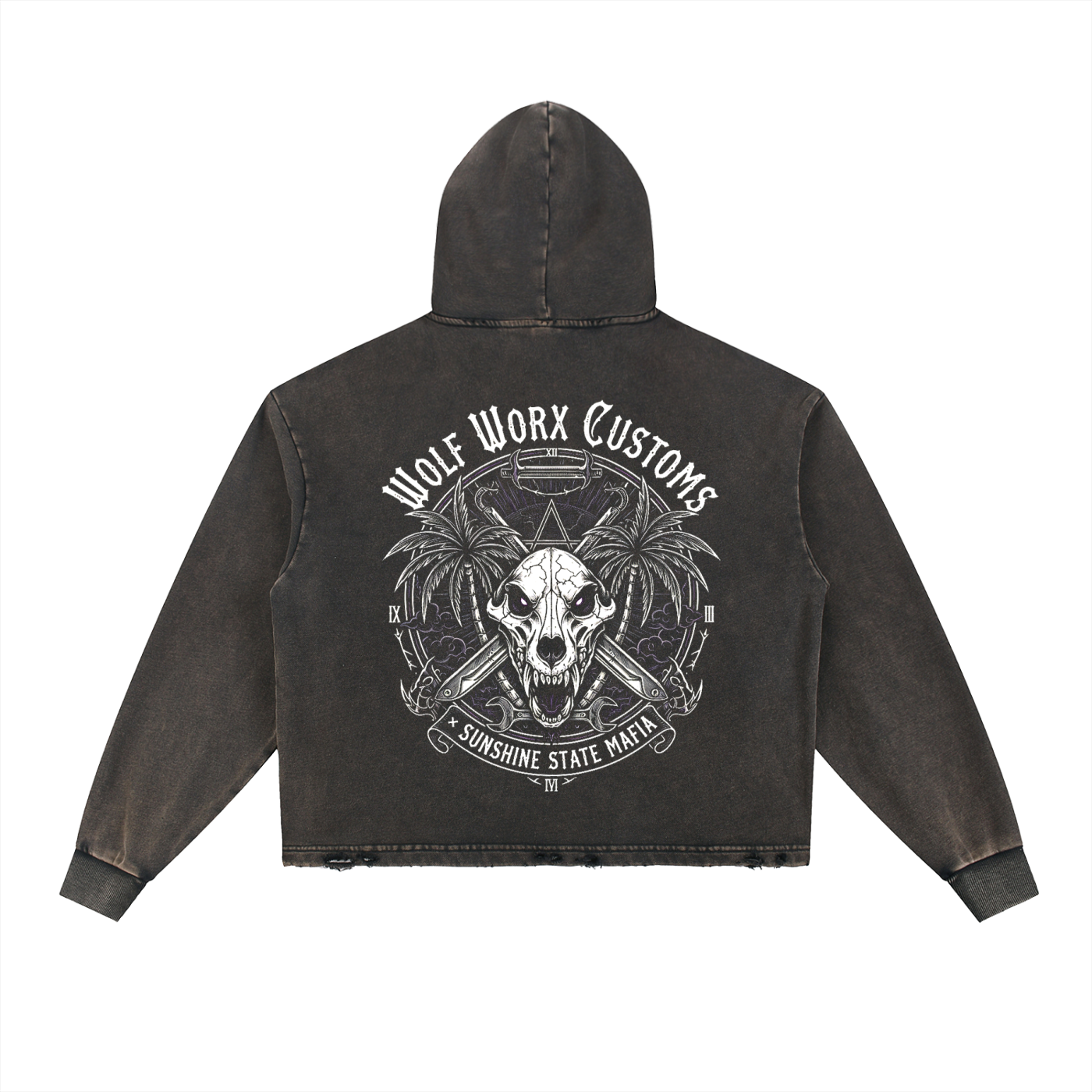 Wolf Worx Customs Sunshine State Mafia Vintage Washed Frayed-Hem Hoodie
