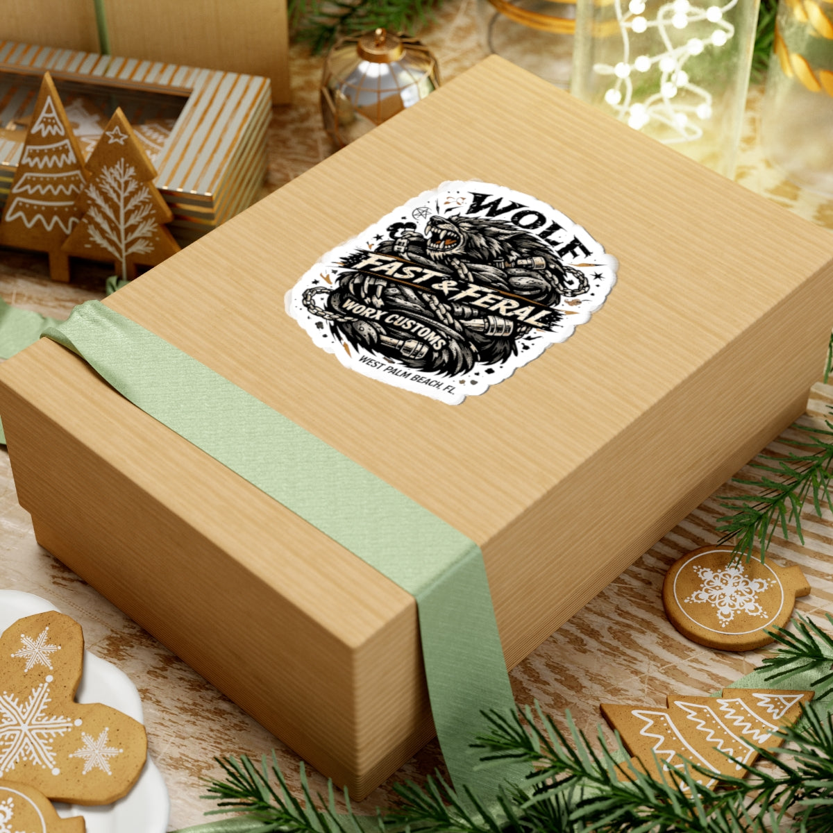 Limited-drop themed stickers tied to specific Wolf Worx Customs and Fast & Feral releases