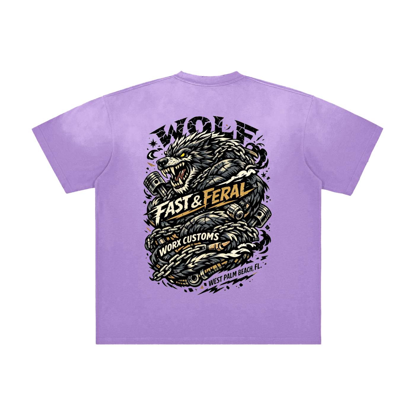 Wolf Worx Customs was born from actual garage floors, late-night wrench sessions, busted knuckles, and real builds. From vintage hot rods and 1932 Deuce Coupes to modern muscle, imports, lifted trucks, and street machines — the culture runs deep here. Every Wolf Worx design reflects real automotive heritage: hot rod history, pinstripe tradition, Von Dutch–era inspiration, race-day grit, outlaw garage energy, and Florida-coded horsepower attitude.
