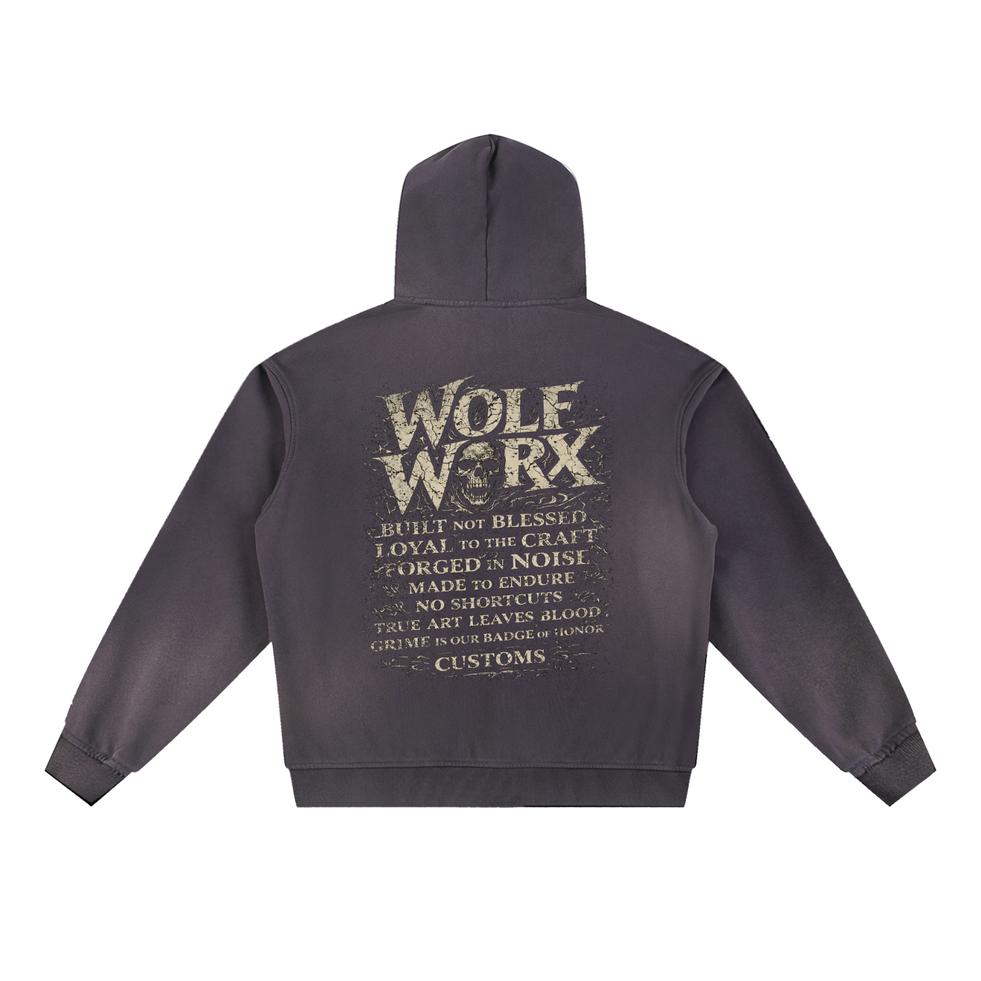 Wolf Worx Customs Words To Live By Sun Fade Frayed Fleece Hoodie