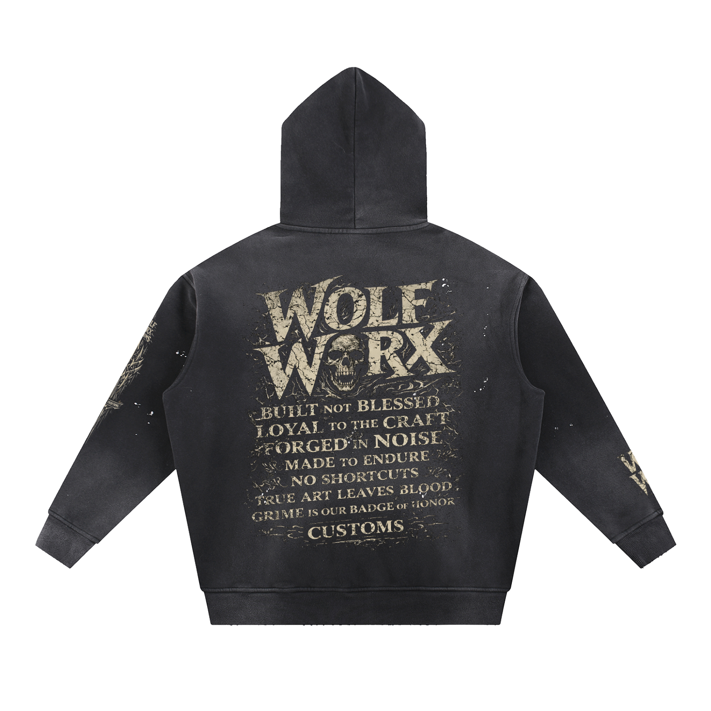 Wolf Worx Customs Words To Live By Vintage Washed Frayed Fleece Hoodie